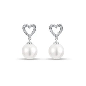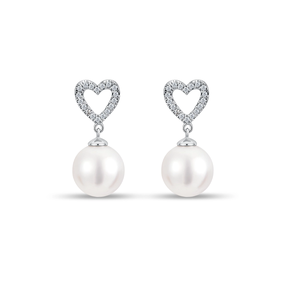 Love Hearts 10K White Gold Diamond Pearl Earrings