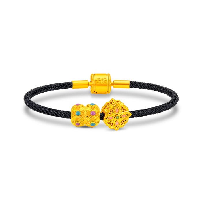 Duo Blossoms 999 Gold Charm Set with Bracelet