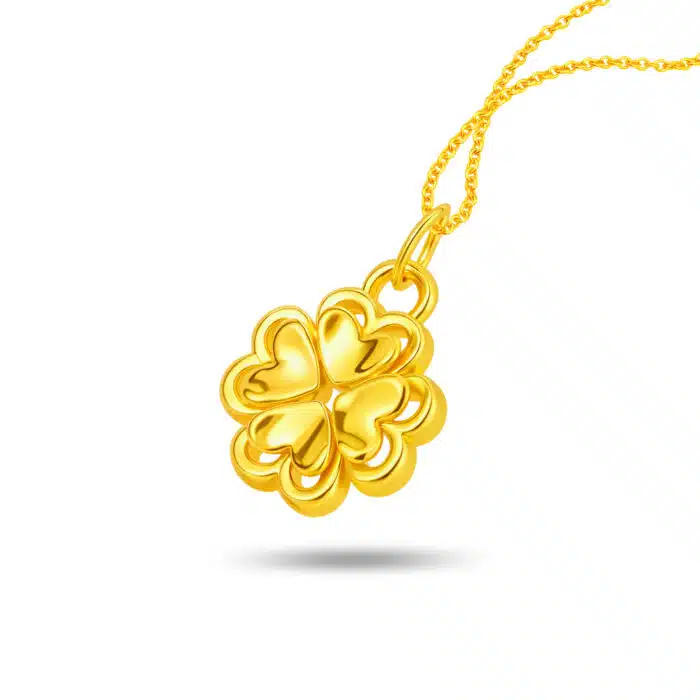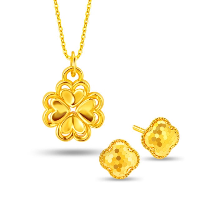 Clover of Love 999 Gold Pendant and Earrings Bundle