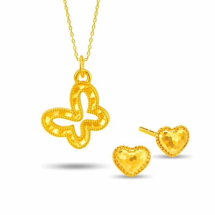 Gilded Butterfly 999 Gold Pendant and Earrings Bundle