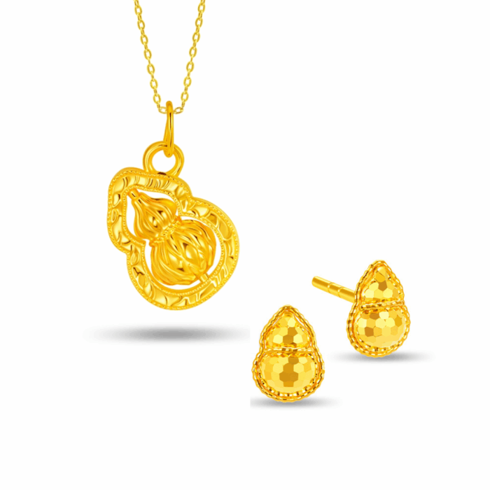 Golden Prosperity Hulu 999 Pure Gold Pendant and Earrings Bundle