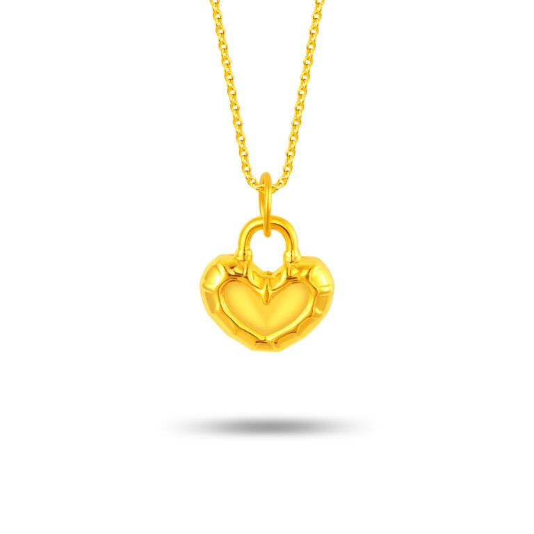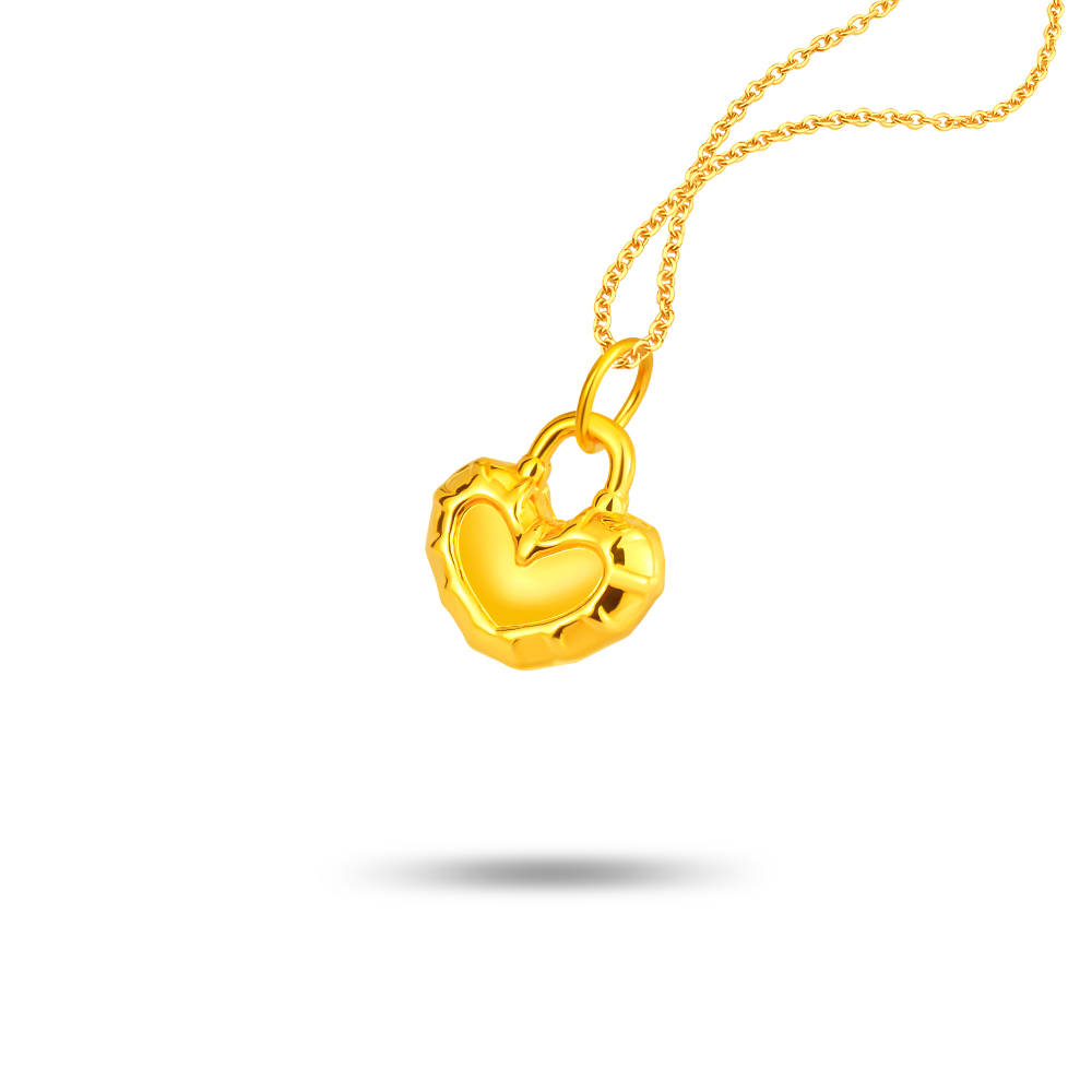 Golden Heart Lock 999 Pure Gold Pendant