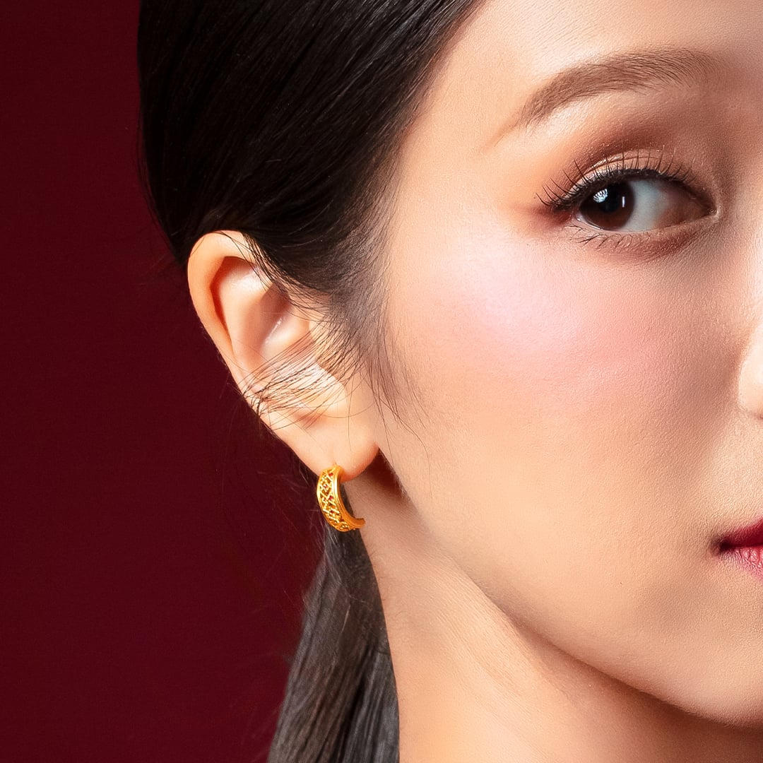 Graceful Triple Leaf Clover 916 Gold Earrings