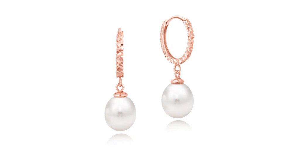 A modern twist on a timeless classic. These Aria Shimmer huggie earrings feature lustrous freshwater pearls that dance beneath a faceted 14K rose gold hoop. Elegant yet playful, they add a soft glow to your everyday look or special occasion outfit—perfect for weddings, dates, or dressing up your casual chic.