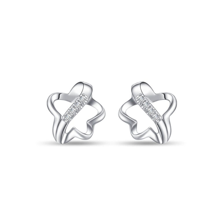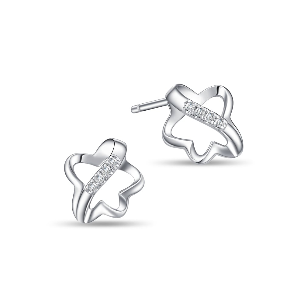 Stellar Embrace Diamond Star 10K White Gold Earrings