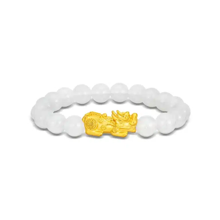 999 Pure Gold Flow of Riches Pixiu White Agate Bracelet
