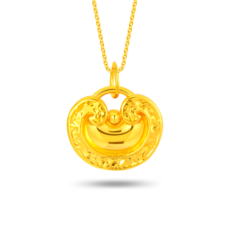 Golden Ruyi Ingot Longevity 999 Pure Gold Pendant