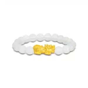 999 Pure Gold Flow of Riches Pixiu White Agate Bracelet
