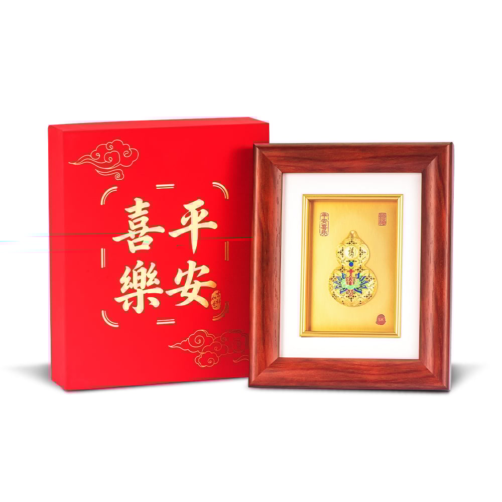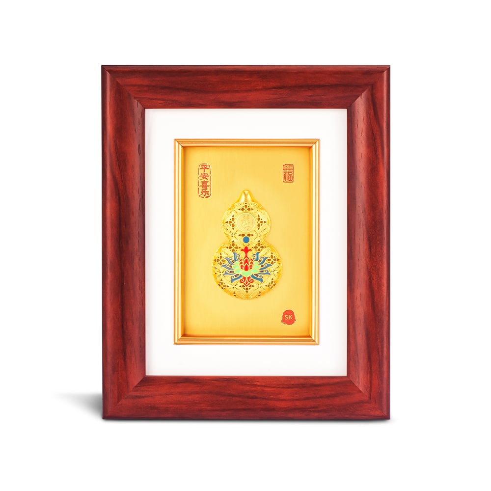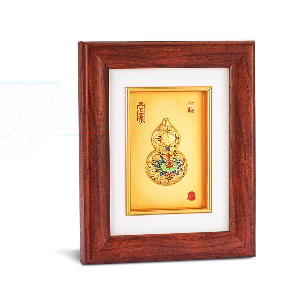 Auspice Lotus Hulu of Peace 平安喜乐 999 Pure Gold Frame