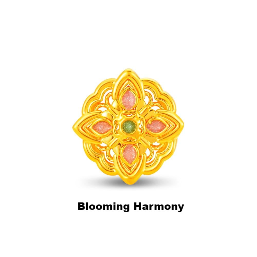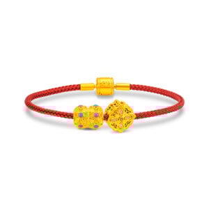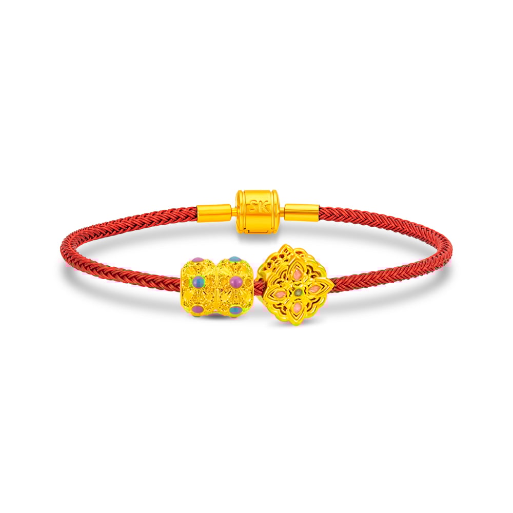 Duo Blossoms 999 Gold Charm Set with Bracelet