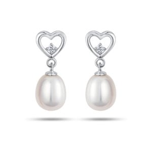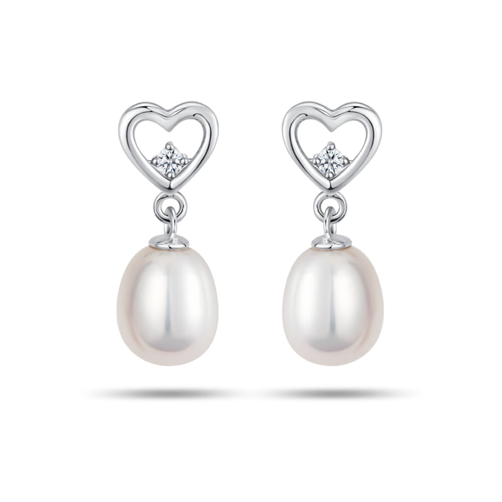 Eternal Heart Pearl 10K White Gold Diamond Earrings