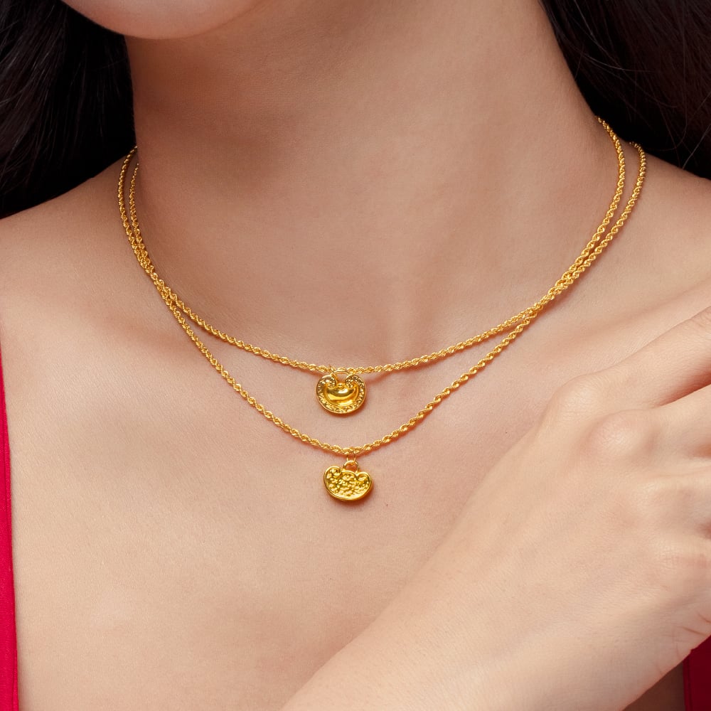 Golden Ruyi Ingot Longevity 999 Pure Gold Pendant