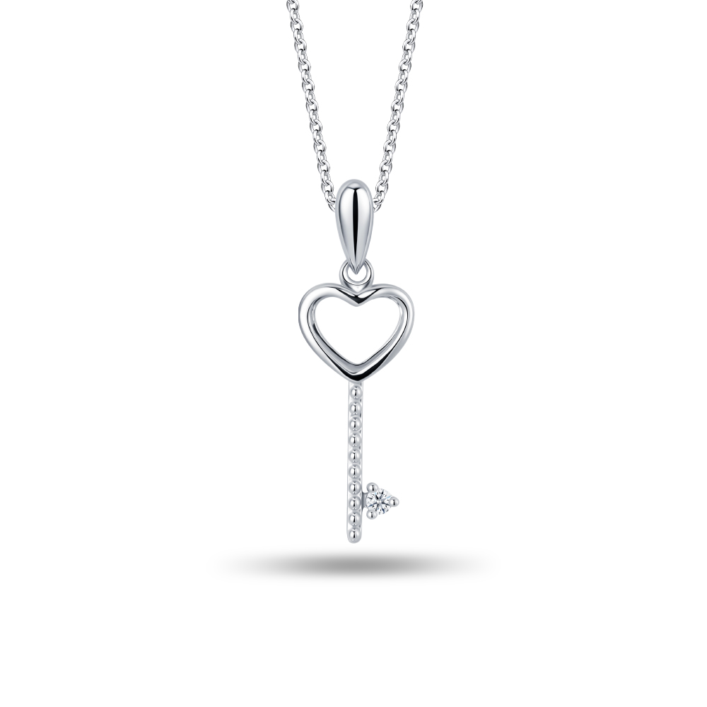 Heart Key Promise Diamond 10K White Gold Pendant