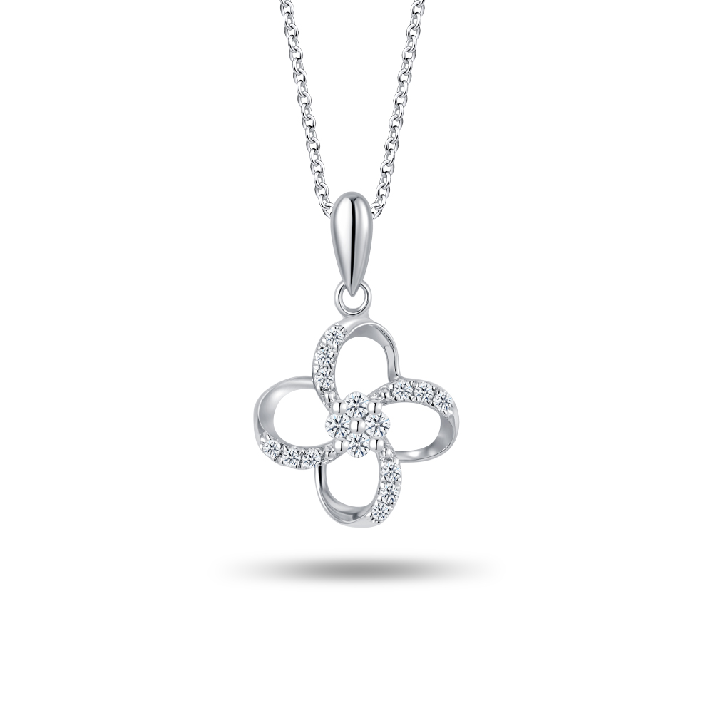 Radiant Clover Diamond 10K White Gold Pendant