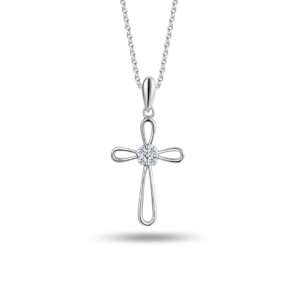 Sacred Light Diamond Cross 10K White Gold Pendant
