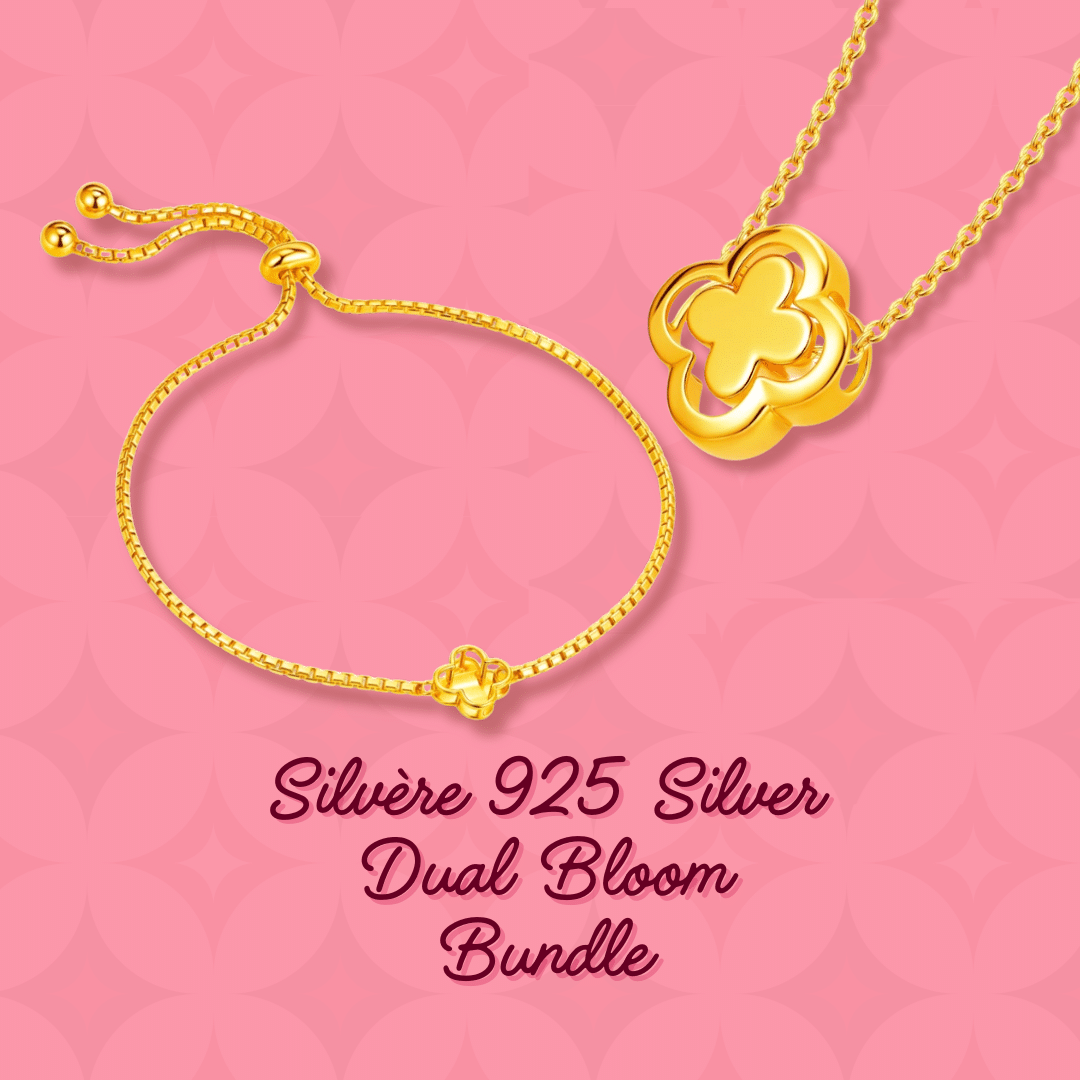 Silvère 925 Silver Clover Necklace and Bracelet Bundle